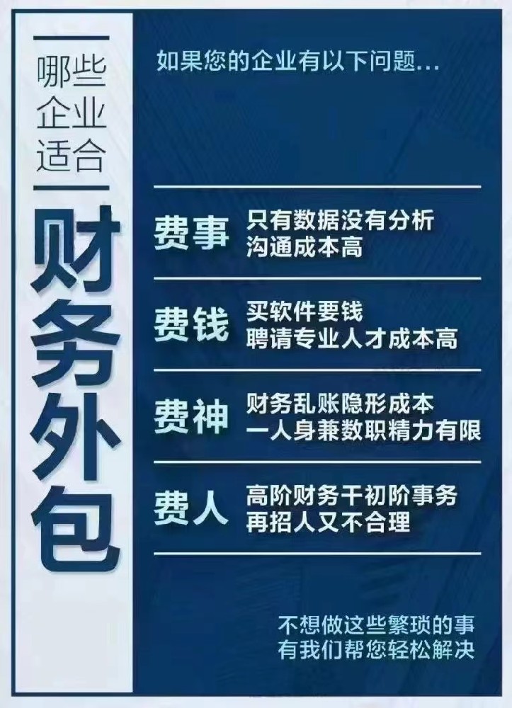 财务外包可以解决公司多个方面的问题,以下是对这些问题的详细分析:一、降低成本与风险降低人力成本:通过外包,公司无需招聘、培训和维持全职财务人员,从而节省了人力成本。减少硬件和软件投资:财务软件、硬件和系统的更新维护费用高昂,外包后这些费用由服务提供商承担,降低了公司的相关投资。降低财务风险:专业的财务外包公司熟悉最新的···...